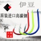 上海申美伊豆彩色鱼钩中国红荧光黄宝蓝有倒刺散装鱼钩进口高碳钢